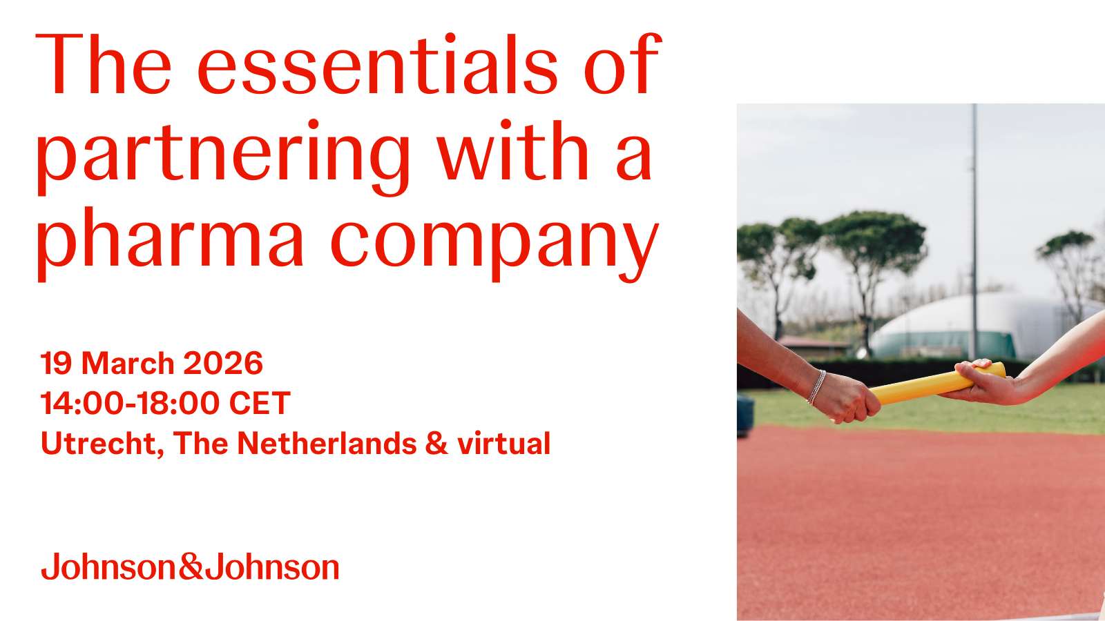 19 March 2026 | J&J | The essentials of partnering with a pharma company | 14:00 – 18:00 CET, Utrecht & virtual